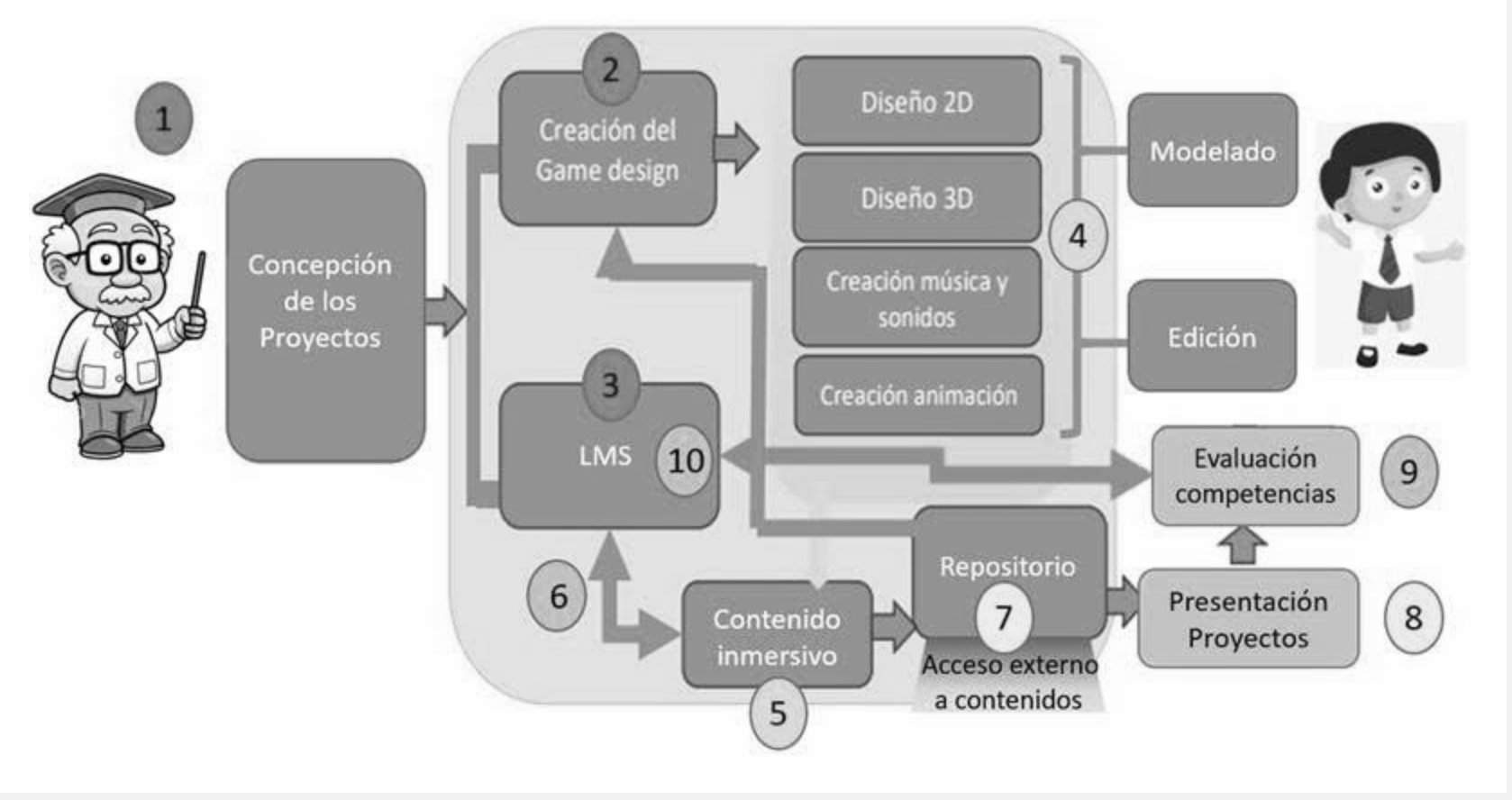 Porque no imaginarnos por tanto una solución basada en Realidad Virtual, que incorpore herramientas y funcionalidades, que permita a los estudiantes convertirse en creadores de contenidos 3D (con herramientas sencillas del estilo de Minecraft) y ambientes inmersivos e interactivos (programadas con herramientas del estilo de scracth), mediante los que plasmen y enseñen a otros los conocimientos que han ido adquiriendo, en el marco de una estrategia de aprendizaje constructivista.